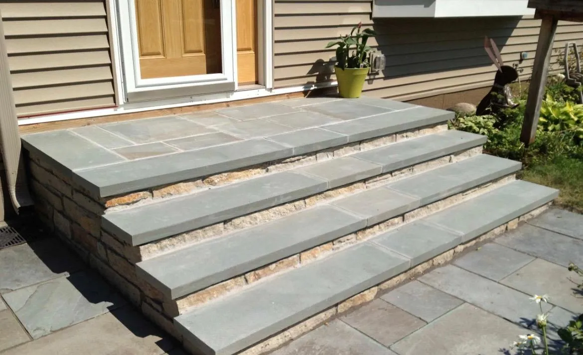 New stone steps and a rebuilt front entry, finished with clean lines and durable materials for a polished, long-lasting look.